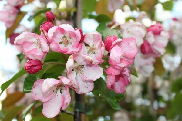 En rigtblomstrende paradisæblesort med smukke, store lyserøde blomster i maj – juni.